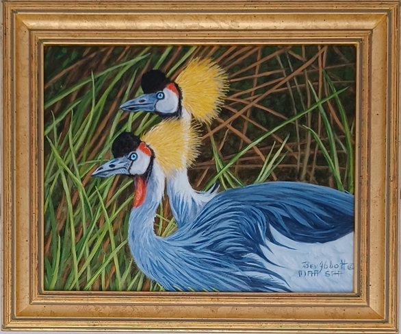 Crowned Cranes Among Reeds